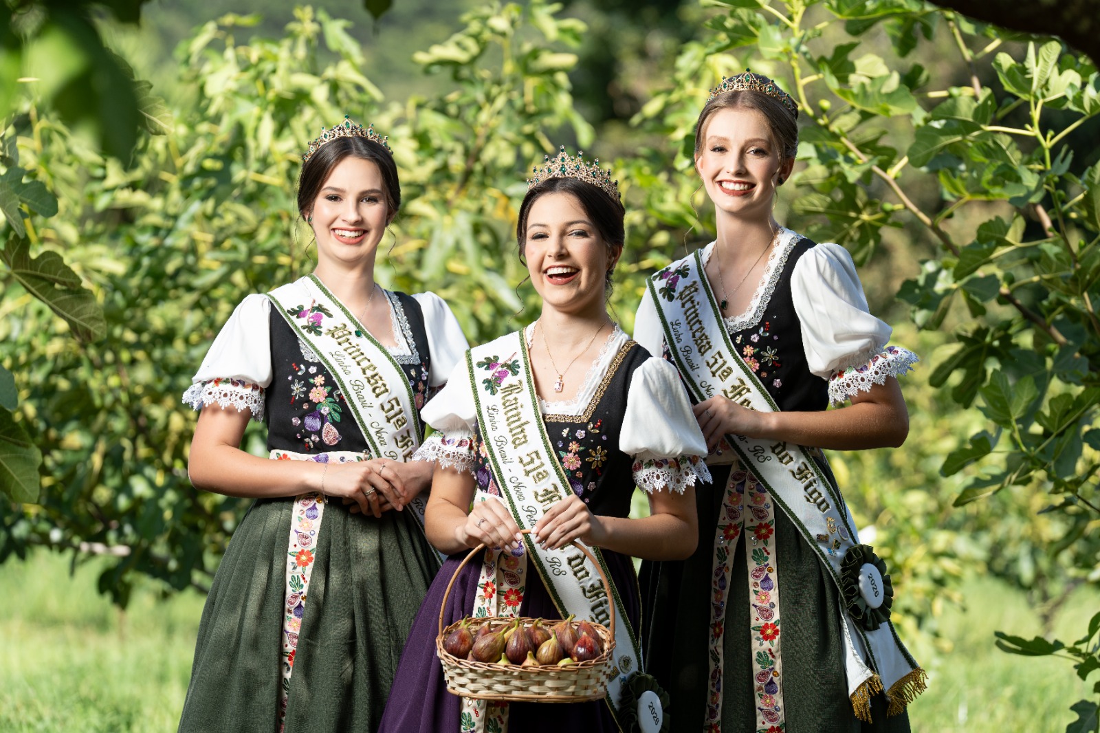 As soberanas da 51ª Festa do Figo, Rainha Sophia Zang e Princesas Emanuelli Thomassoni Bino e Manuela Wedig, estarão recebendo o público durante a festa, celebrando a cultura e a tradição do evento, além de compartilhar momentos especiais com os visitantes e participar das diversas atrações.