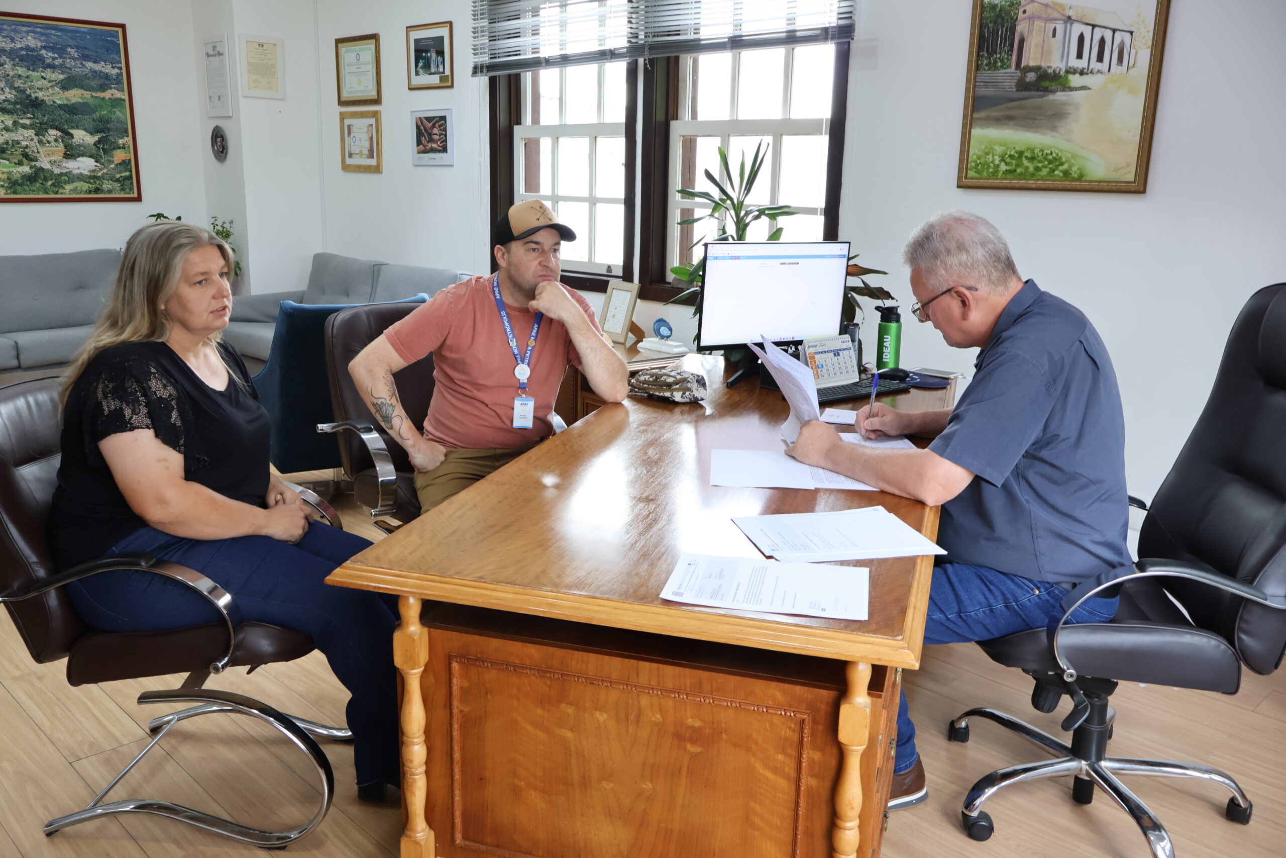 A Administração Municipal oficializou a renovação de sua parceria com a Associação de Pais e Amigos dos Excepcionais (APAE) na manhã de quinta-feira, 29 de janeiro. Em ato realizado no Gabinete Oficial, o prefeito Daniel Carlos Michaelsen assinou dois termos de colaboração que, somados, garantem o repasse de R$ 720.000,00 para a entidade ao longo do ano de 2026.