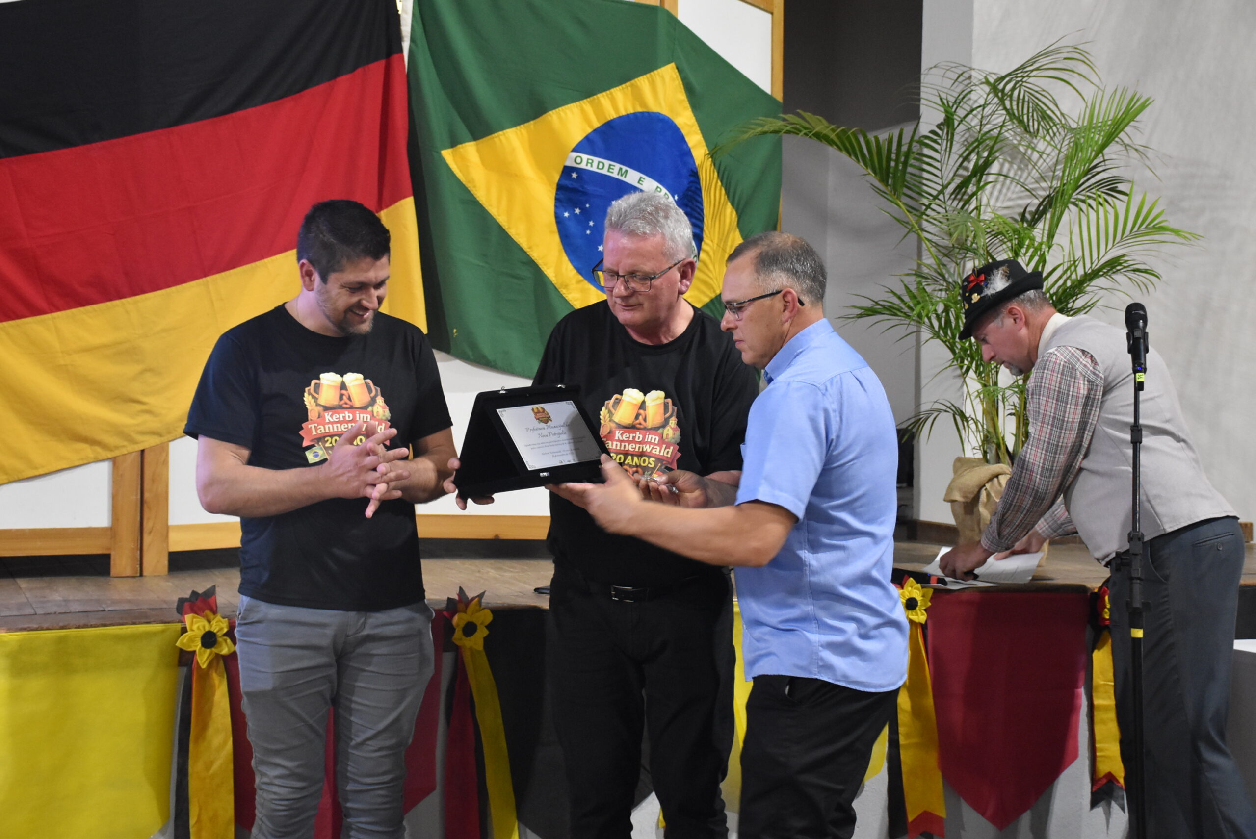 A Prefeitura também recebeu uma homenagem durante a solenidade de abertura: uma placa com agradecimento pelo apoio prestado ao Kerb Im Tannenwald nestas 20 edições.