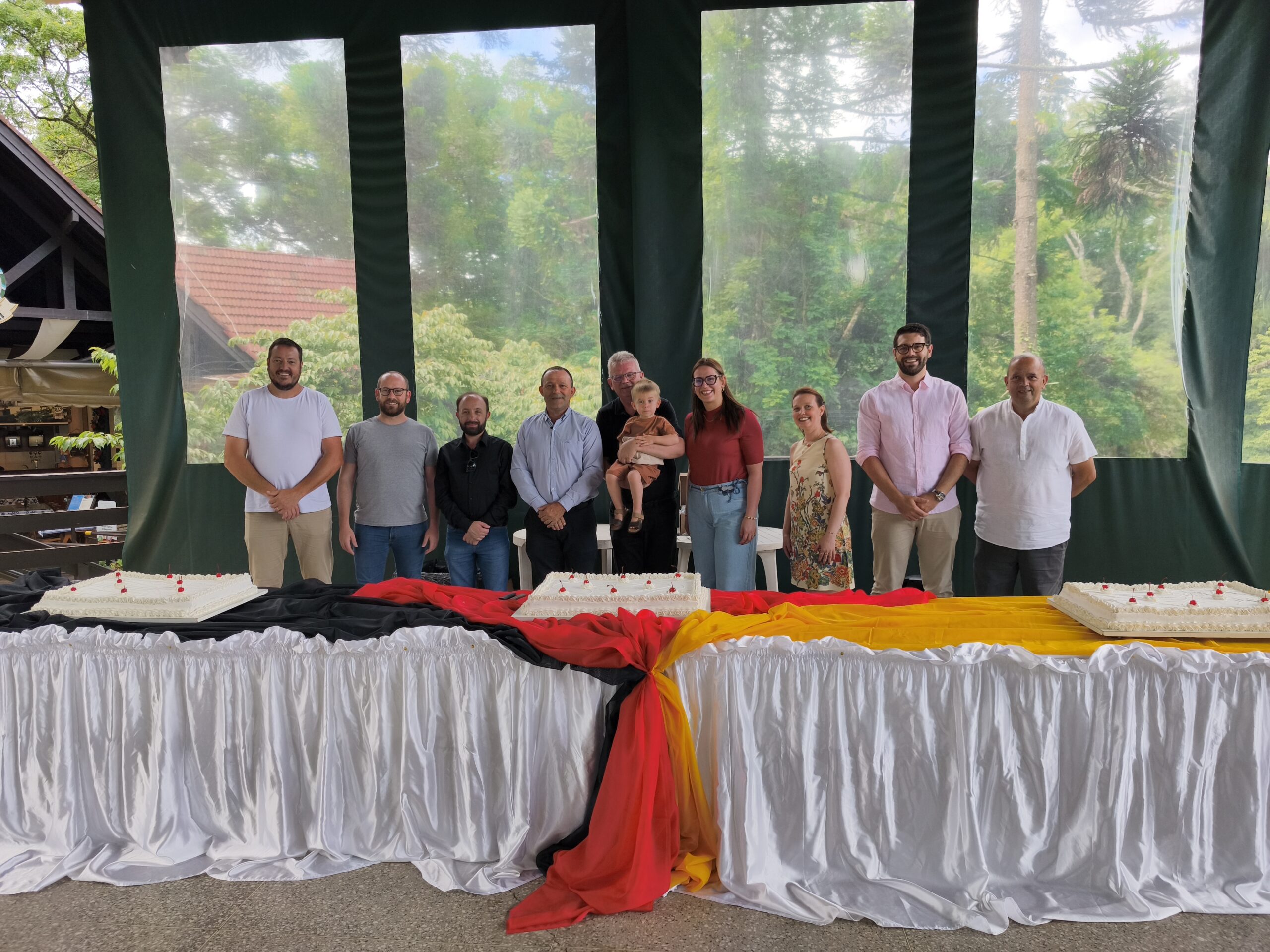 Na tarde do último domingo, 11 de janeiro, ocorreu a comemoração do 41º Aniversário do Parque Aldeia do Imigrante, data que é celebrada nesta segunda, dia 12, com uma programação especial que reuniu comunidade e visitantes em um momento de celebração, cultura e confraternização. O prefeito de Nova Petrópolis, Daniel Carlos Michaelsen, e sua esposa, Marisa Michaelsen; o secretário Municipal de Turismo e Cultura, Rodrigo Barbieri Sangali, e a secretária adjunta da pasta, Mayara Senna dos Reis; a secretária Municipal de Educação e Desporto, Caroline Andréia Kehl Matter; o presidente da Câmara de Vereadores, Tarcísio Brescovit, e os vereadores Arthur Schumann (Tuli) e João Batista dos Santos (João Bombeiro); o presidente do Conselho Municipal de Turismo, Marcelo Becker; o presidente do Conselho Municipal de Políticas Públicas Culturais, Mauro Stoffel; a consultora da Urbanes Parques, Daniele Kunzler; e a gerente do Parque Aldeia do Imigrante, Lediane Werner, participaram do ato de cerimônia do evento.