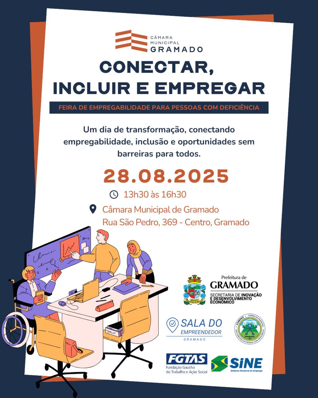 A Feira acontecerá no dia 28 de agosto, das 13h30 às 16h30, nos corredores da Câmara Municipal de Gramado. Empresas da região já cadastraram vagas inclusivas para o evento, que também oferecerá informações sobre direitos, inclusão no mercado e serviços de apoio à empregabilidade.