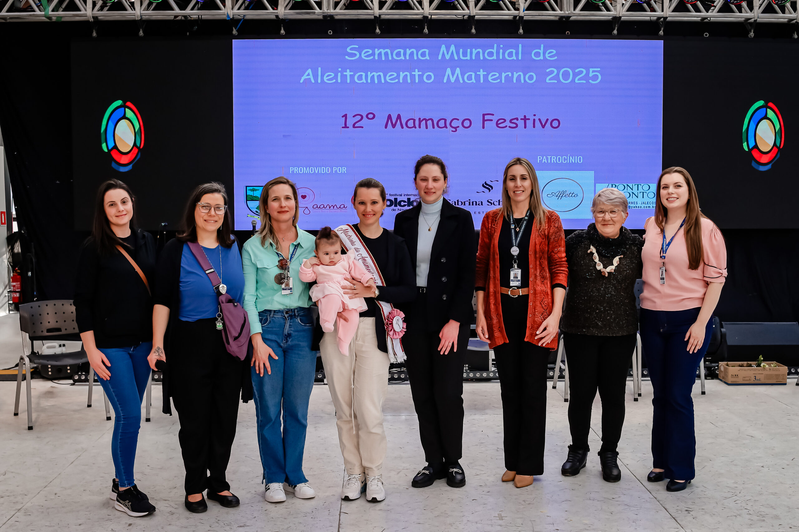 A Prefeitura de Nova Petrópolis, por meio da Secretaria de Saúde e Assistência Social e do Grupo de Apoio ao Aleitamento Materno (GAAMA), promoveu, no dia 1º de agosto, o 12º Mamaço Festivo, em alusão à Semana Mundial da Amamentação (SMAM) e ao Agosto Dourado. O evento ocorreu no palco da Rua Coberta de Nova Petrópolis, junto com a programação do 52º Festival Internacional de Folclore, e contou com a participação de mais de 20 mamães, além de servidores municipais, profissionais da Saúde e comunidade em geral.