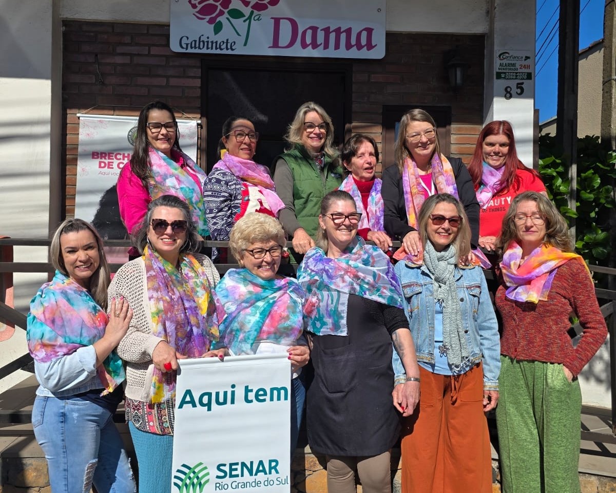 Entre os dias 13 e 17 de outubro, o Gabinete da Primeira-Dama de Gramado, em parceria com as Damas de Caridade e o Senar, promoveu o curso de Tingimento e Pintura em Tecido, ministrado pela professora Cleci Bordignon. A atividade ofereceu aos participantes a oportunidade de desenvolver habilidades artesanais que podem se transformar em fonte de renda e expressão criativa.