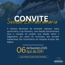 A Câmara Municipal de Gramado realizará, na próxima quinta-feira, dia