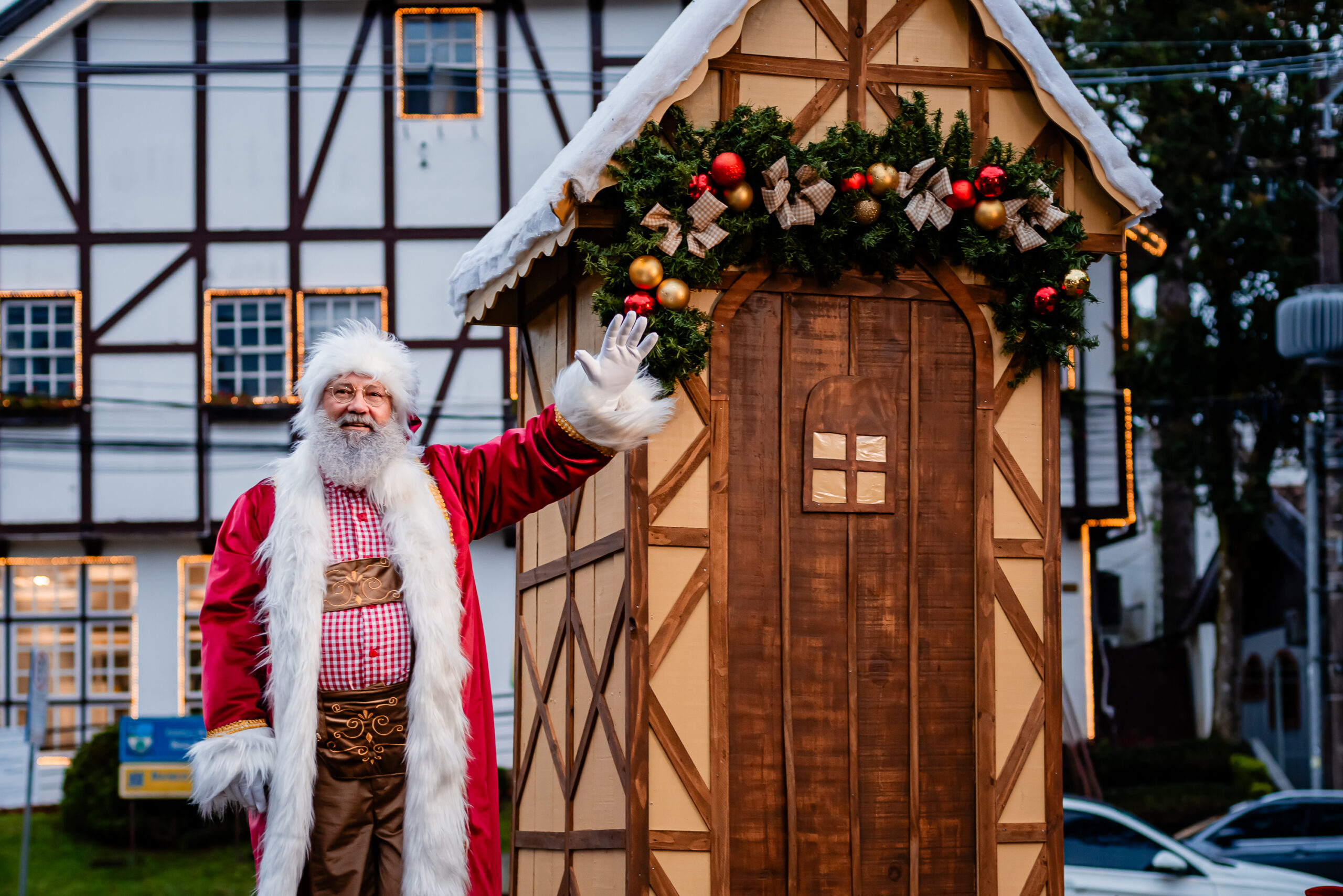 Essa mesma proposta permeia o conceito da Árvore de Natal gigante, com 12 metros de altura, que ornamenta a Praça das Flores e já se consolida como cartão-postal para quem passar pela cidade. Seja durante o dia ou à noite, quando ganha o realce de uma iluminação cênica, a peça de design autoral homenageia souvenires decorativos alemães. O entorno combina outros elementos clássicos natalinos, enriquecidos por registros que mostram lembranças afetivas e valorizam a identidade germânica, com hábitos, tradições e paisagens típicos da região desta colonização.
