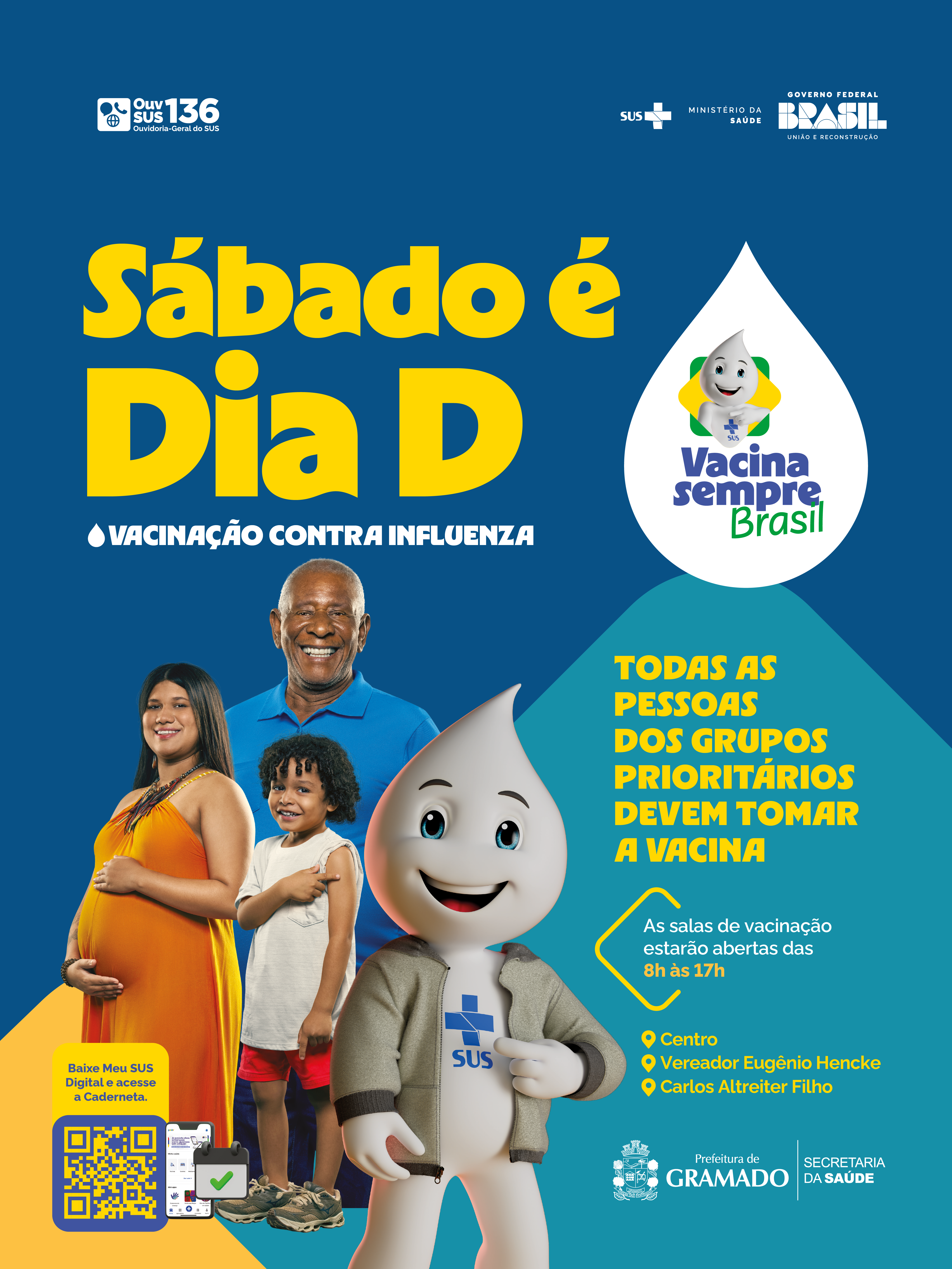 A Prefeitura de Gramado, por meio da Secretaria da Saúde, realiza neste sábado (28) o Dia D de vacinação contra a Influenza. A mobilização busca garantir a proteção da população pertencente aos grupos prioritários antes do período de maior circulação do vírus, que ocorre tradicionalmente durante o inverno.