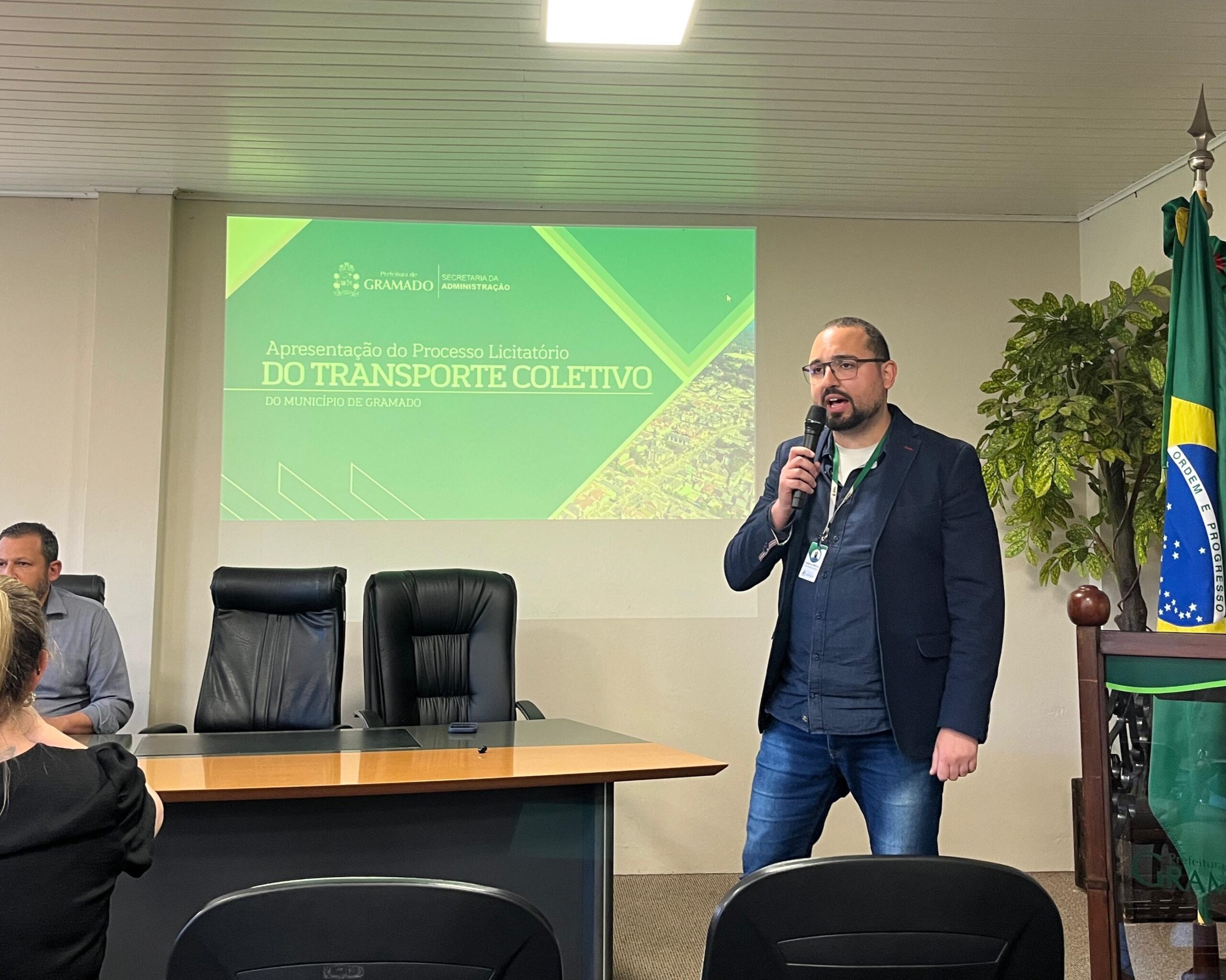 Na tarde desta quarta-feira (15), a Secretaria de Segurança Pública, Trânsito, Transporte e Fiscalização de Gramado realizou uma Audiência Pública para apresentação do edital de licitação para concessão do novo sistema de Transporte Público Coletivo Urbano e Rural do município. Durante a apresentação, o diretor de Licitações e Contratos, Frederico Pellicioli, detalhou os principais pontos do certame, que será lançado ainda nesta semana. A concorrência ocorrerá na modalidade eletrônica.