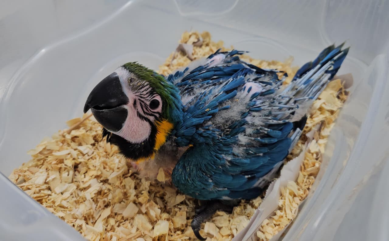 Já as araras, são altriciais – precisam receber alimentação, aquecimento e cuidados parentais. Além de uma incubadora, o médico veterinário utiliza uma Unidade de Tratamento Animal (UTA), que recebe os recém-nascidos. “O filhote de arara, que nasceu em 2 de janeiro de 2026, exige atendimento especial. Na natureza, viveria no ninho e seria alimentado pelos pais até atingir a maturidade. Aqui, logo após o nascimento, ele recebia alimento a cada duas horas ou sempre que esvaziava o papo. Agora, com mais de dois meses, o filhote recebe uma papinha especial duas vezes por dia”, conta o veterinário.