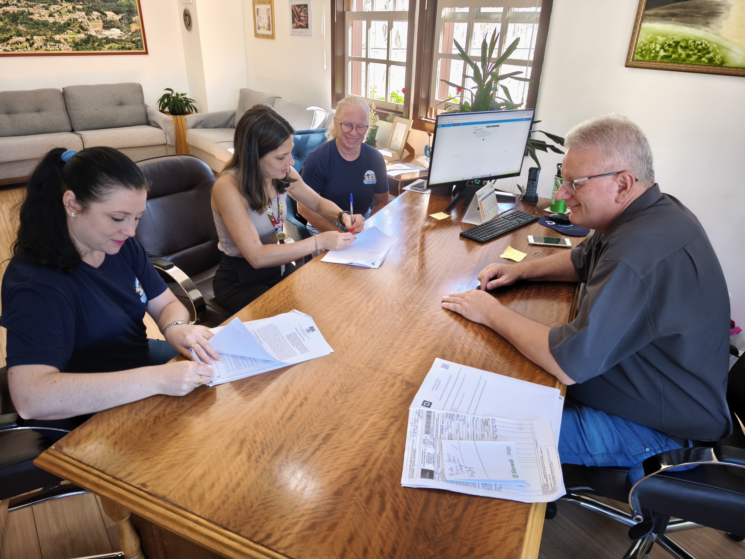 A Administração Municipal e a Associação dos Amigos da Cultura de Nova Petrópolis firmaram termo de fomento nesta terça-feira, 31 de março, no Gabinete Oficial. O prefeito de Nova Petrópolis, Daniel Carlos Michaelsen, e a presidente da entidade, Gisele Tamara Beck, assinaram o termo que prevê o repasse financeiro de R$ 60 mil pelo Executivo Municipal para realização do 26º Festival Municipal de Música Estudantil, que ocorre nos dias 13, 14, 15, 20, 21 e 22 de outubro, no Auditório do Centro de Eventos.