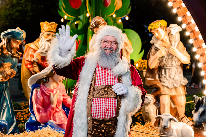 A partir daí, sua presença na programação oficial se tornou aguardada: abertura, entrevistas, Caminhada das Lanternas, Cantatas na Janela, encontros com alunos e encerramento. Neste ano, a agenda está ainda mais intensa, incluindo visitas à prefeitura e até na largada da rústica do evento. E, em 2025, veio com novidades. No Natal mais germânico da Serra gaúcha, o traje vermelho do Papai Noel divide espaço na composição com o Lederhosen, vestimenta típica alemã que traz calça, suspensórios e camisa xadrez. O ‘Bom Velhinho’ que aparece, pessoalmente, em momentos-chave da programação, também exibe uma charmosa releitura dessa composição, com o traje típico apresentado em marrom e xadrez e complementado pelo tradicional manto vermelho.
