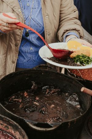O menu conta ainda com couve refogada, mandioca frita, torresmo, pão caseiro, arroz branco, farofa, banana à milanesa e laranja como acompanhamentos. Para harmonizar com a feijoada, cachaças envelhecidas em madeira de Jequitibá Rosa e Grápia, chope artesanal e drinks também serão vendidos no local para os visitantes.
