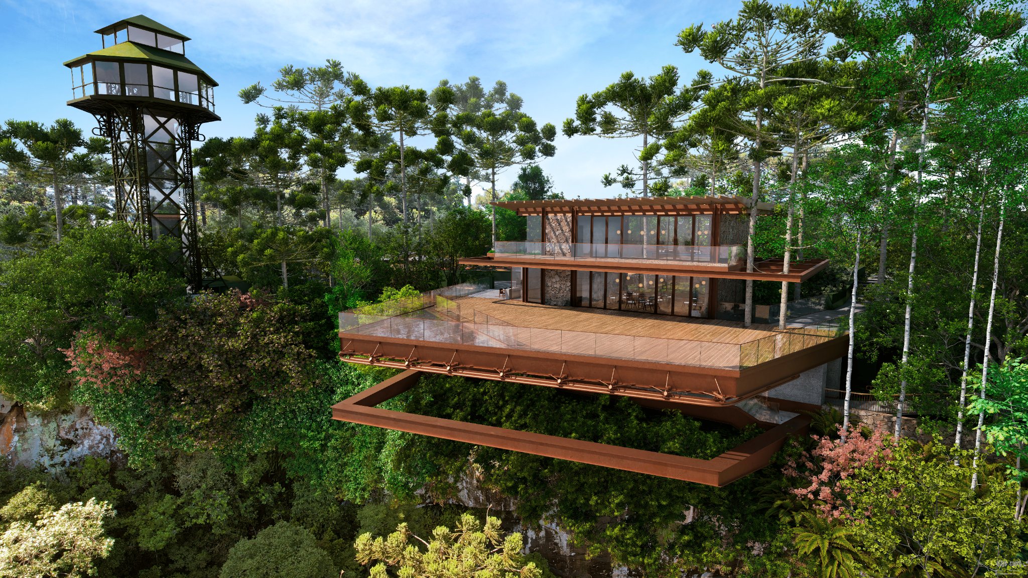 “O Mirante do Cascata do Caracol foi um projeto muito especial para nós, concebido para promover a completa imersão do visitante na inebriante paisagem de Canela. Nosso objetivo foi criar múltiplas experiências. Para todos, o prazer da pura contemplação ainda mais envolvidos na paisagem. Para os mais ousados, a emoção do piso de vidro”, revela Índio da Costa, renomado arquiteto e urbanista brasileiro.