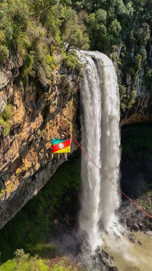 Buscando homenagear a coragem e a forte cultura do povo gaúcho, a bandeira do Rio Grande do Sul ganhou destaque em Salto de Pêndulo na Cascata do Caracol, um dos cartões-postais do estado. O registro foi feito pelo Parque do Caracol junto com a Natural Extremo.