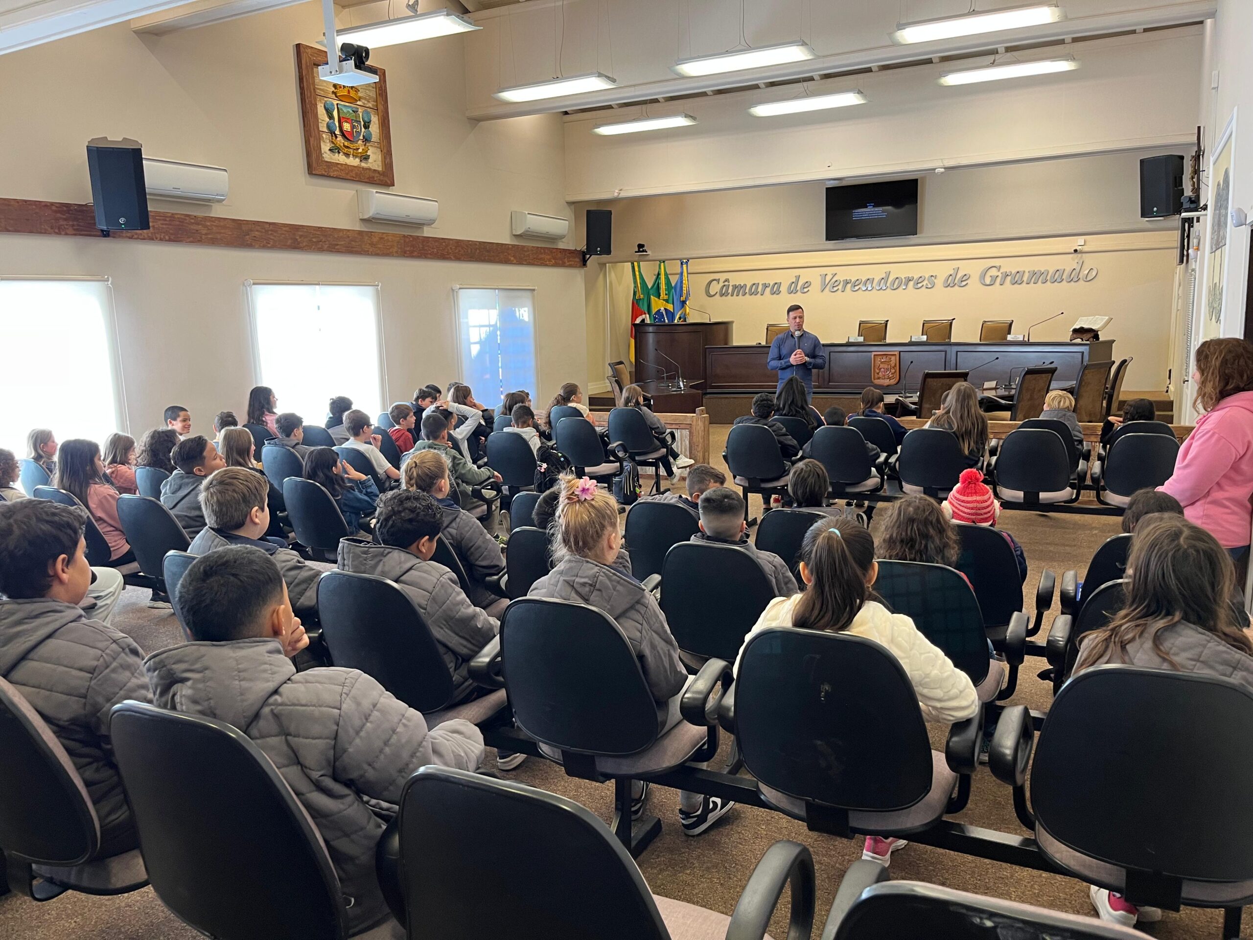 O Projeto Plantando o Futuro, promovido pela Escola do Legislativo Ivo Bezzi, segue cumprindo seu papel de aproximar as escolas da Câmara Municipal de Gramado. Na manhã desta segunda-feira, dia 5, o diretor da Escola do Legislativo, Fábio Schmatz, recebeu cerca de 60 alunos do 4º ano da Escola Municipal Senador Salgado Filho para mais uma visita especial à Casa do Povo.