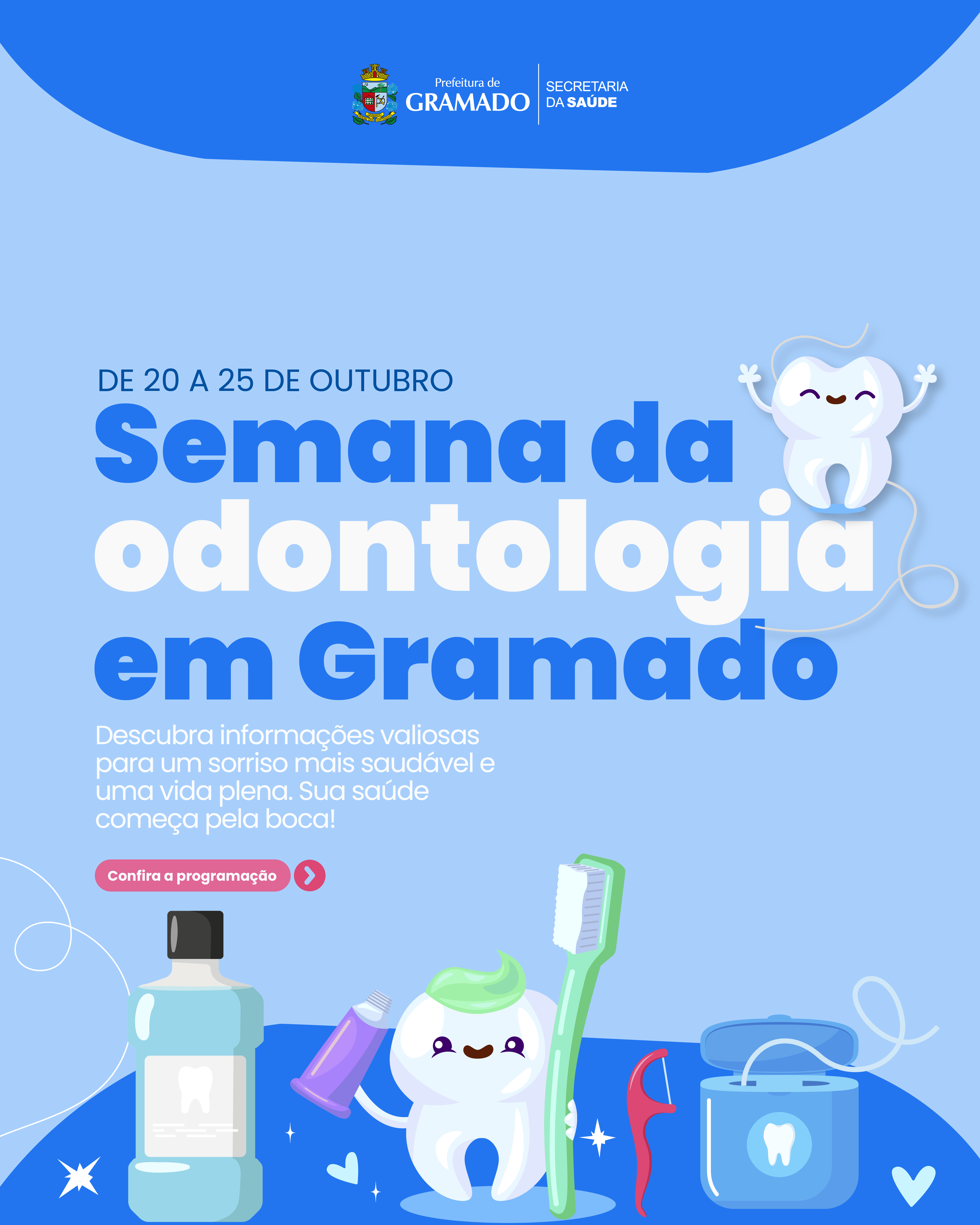 Entre os dias 20 e 25 de outubro, a Secretaria Municipal da Saúde realiza a Semana da Odontologia, com uma programação voltada à promoção da saúde bucal, prevenção de doenças e orientações sobre hábitos saudáveis em todas as fases da vida. O objetivo é aproximar a população dos serviços odontológicos e reforçar a importância do cuidado com a saúde bucal como parte essencial da saúde geral.